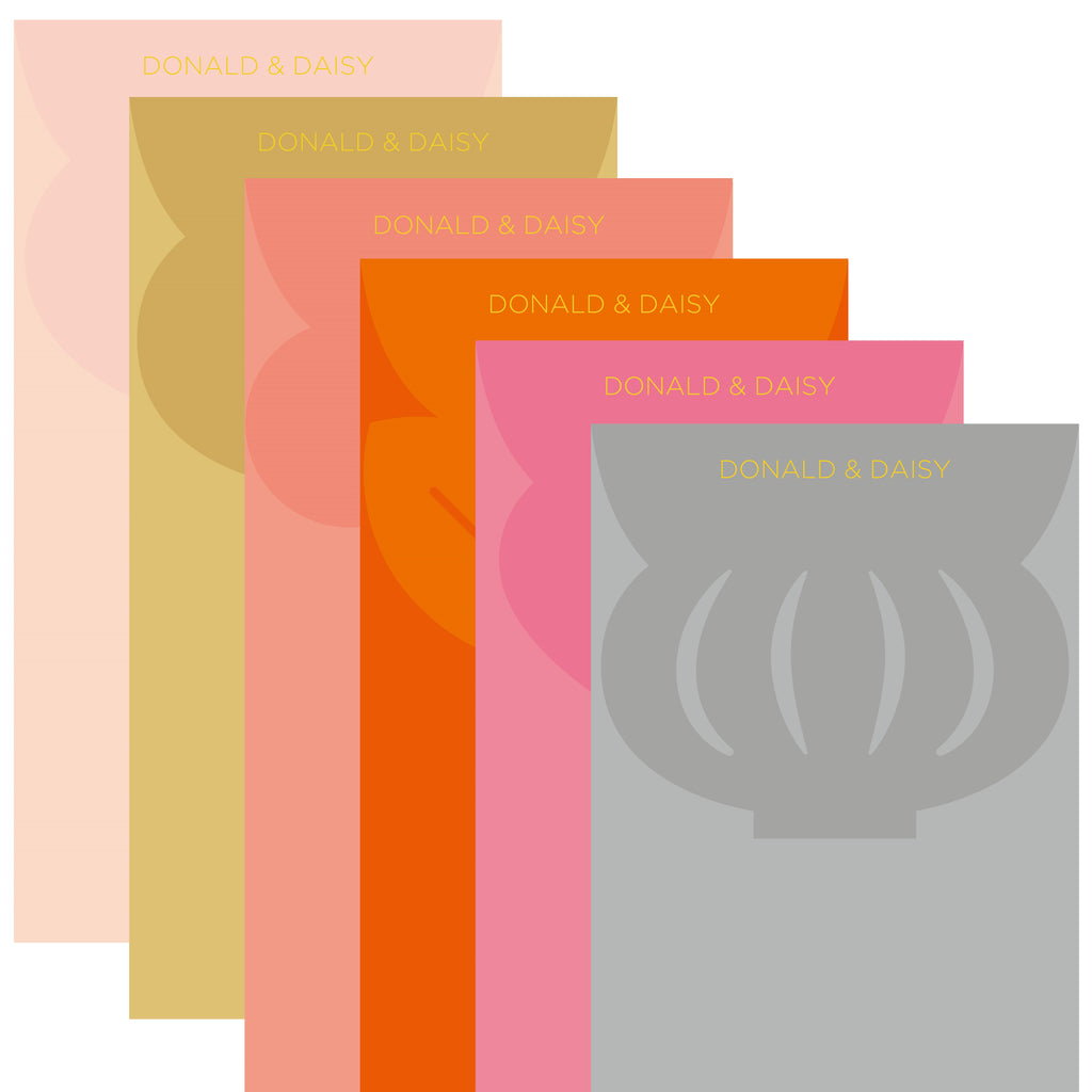 設計師以抽象的花朵和植物為概念,配上不同顏色、形狀、紙材及貼紙,代表著喜悅的無限泉源,藉此配搭出更多不一樣的可能性。